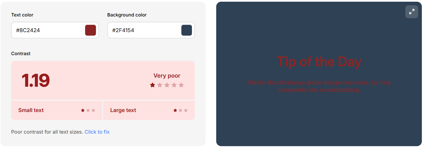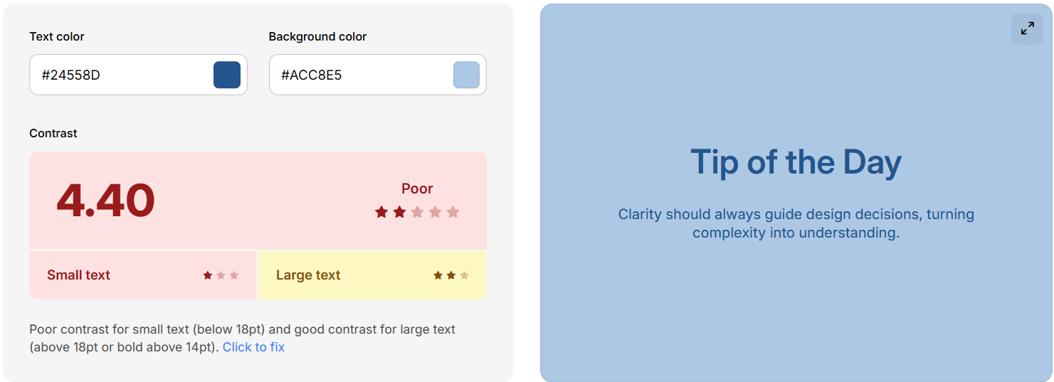 Helpful links: Coolors contrast checker, Coolors Palettes