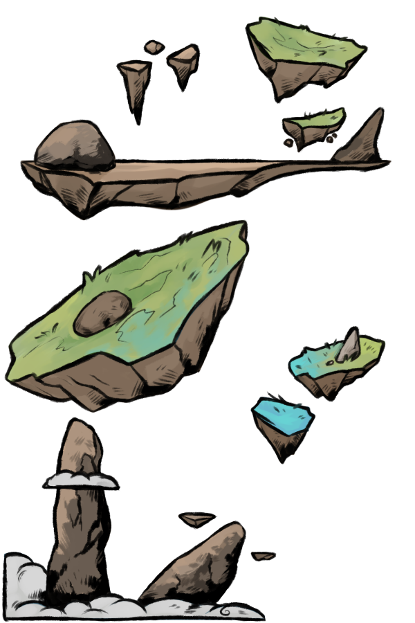 A very common thing up there are natural stone pillars, they are up to 300 meters in hight and are mainly located on the lowest islands. For that reason, they appear like they "grow out of clouds", going up to the highest islands in some cases. Dragons and people love to fly up and around them. They also make a great parkour.